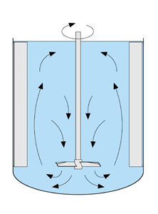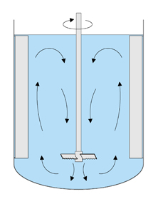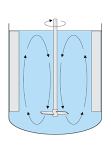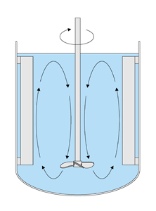 轴流型,循环速率高,剪切力小,采用挡板或导流筒则轴向循环流更强。