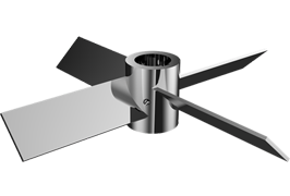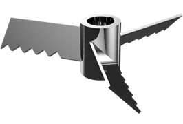 轴流型桨叶,高速回转产生强烈的压差并在边缘锯齿带形成强力剪切,当存在固体颗粒,粉体块或不溶的液体块时,可由利齿粉碎并分散到液体中,充分发挥溶解分散的作用。