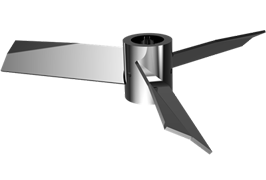 轴流型,循环速率高,剪切力小,桨叶外缘采用折弯处理,减少径向流量损失,加大轴向流量,采用挡板或导流筒则轴向循环流更强。